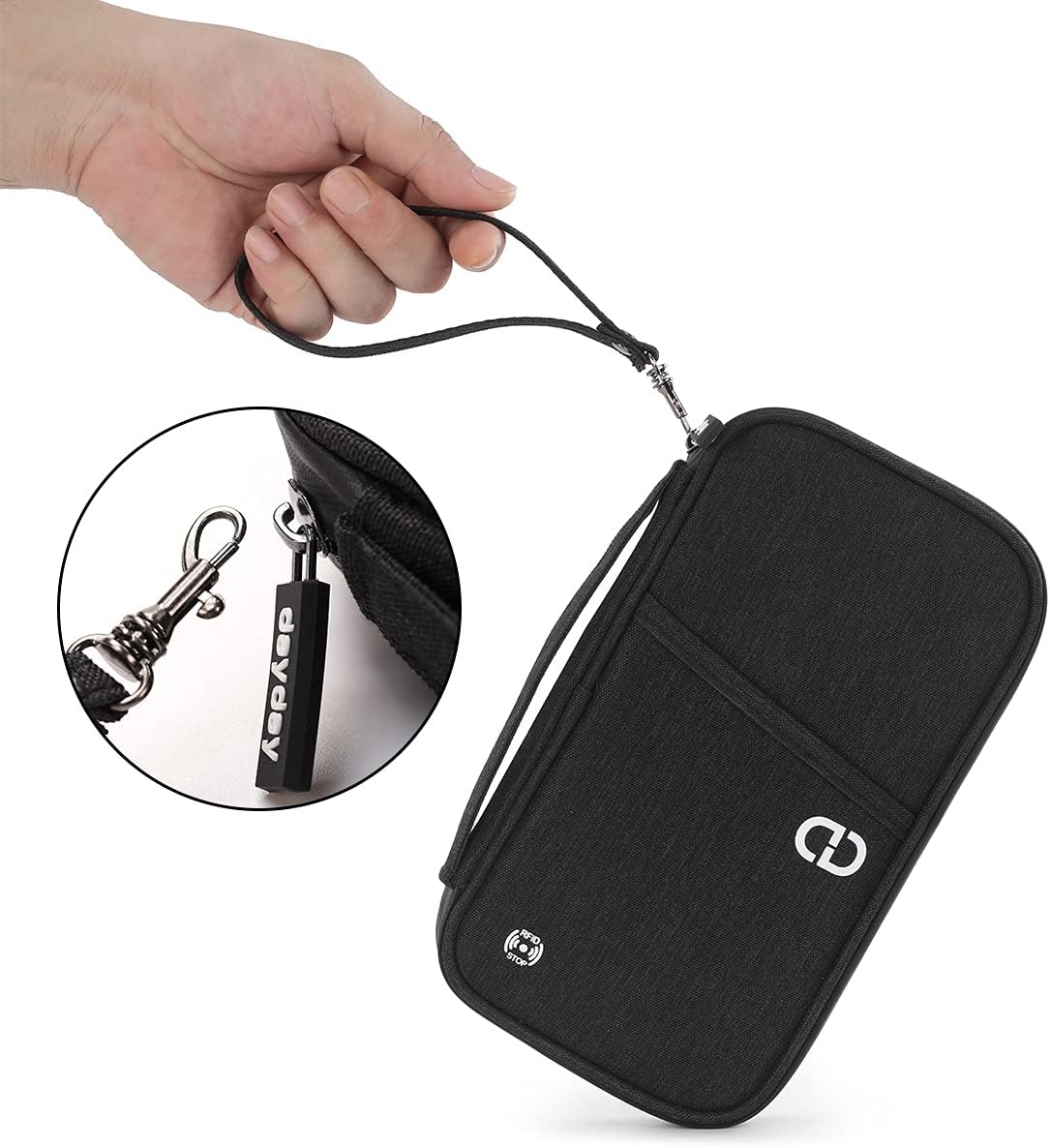 dayday® Passport Holder for Travel Family – RFID Blocking Travel Wallet Organizer Bag for Documents – Water-Resistant Passport Wallet with Wrist Strap, Up to 4 Passports – 8.7 x 4.7 x 1.2 Inches